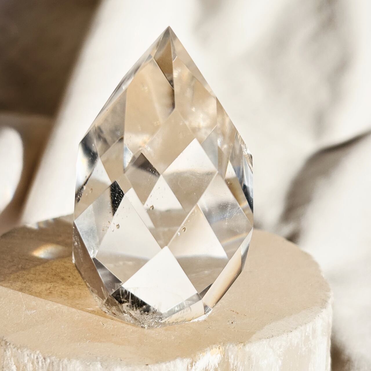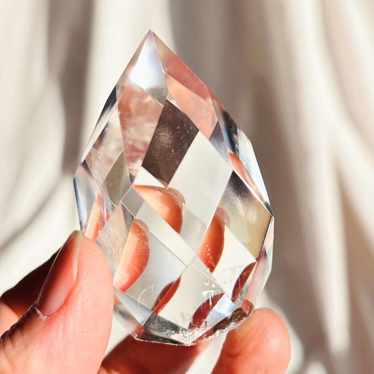 レムリアンクォーツ ファセットカット レインボー入り 虹入 水晶 バイア州産 ブラジル Lemurian Quartz【743】