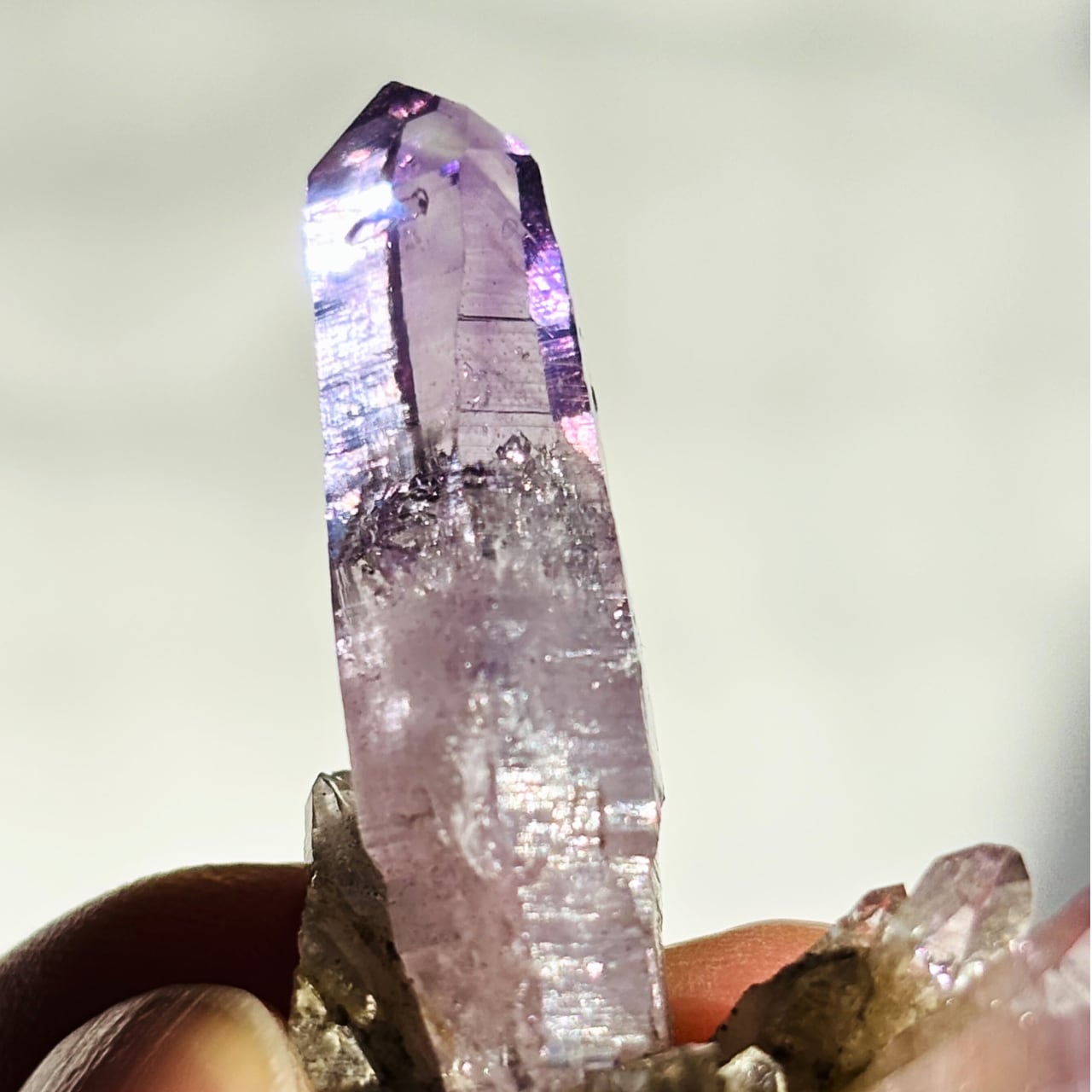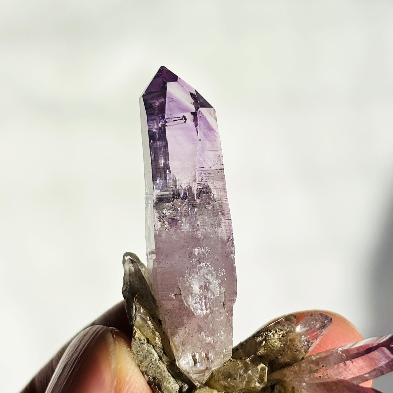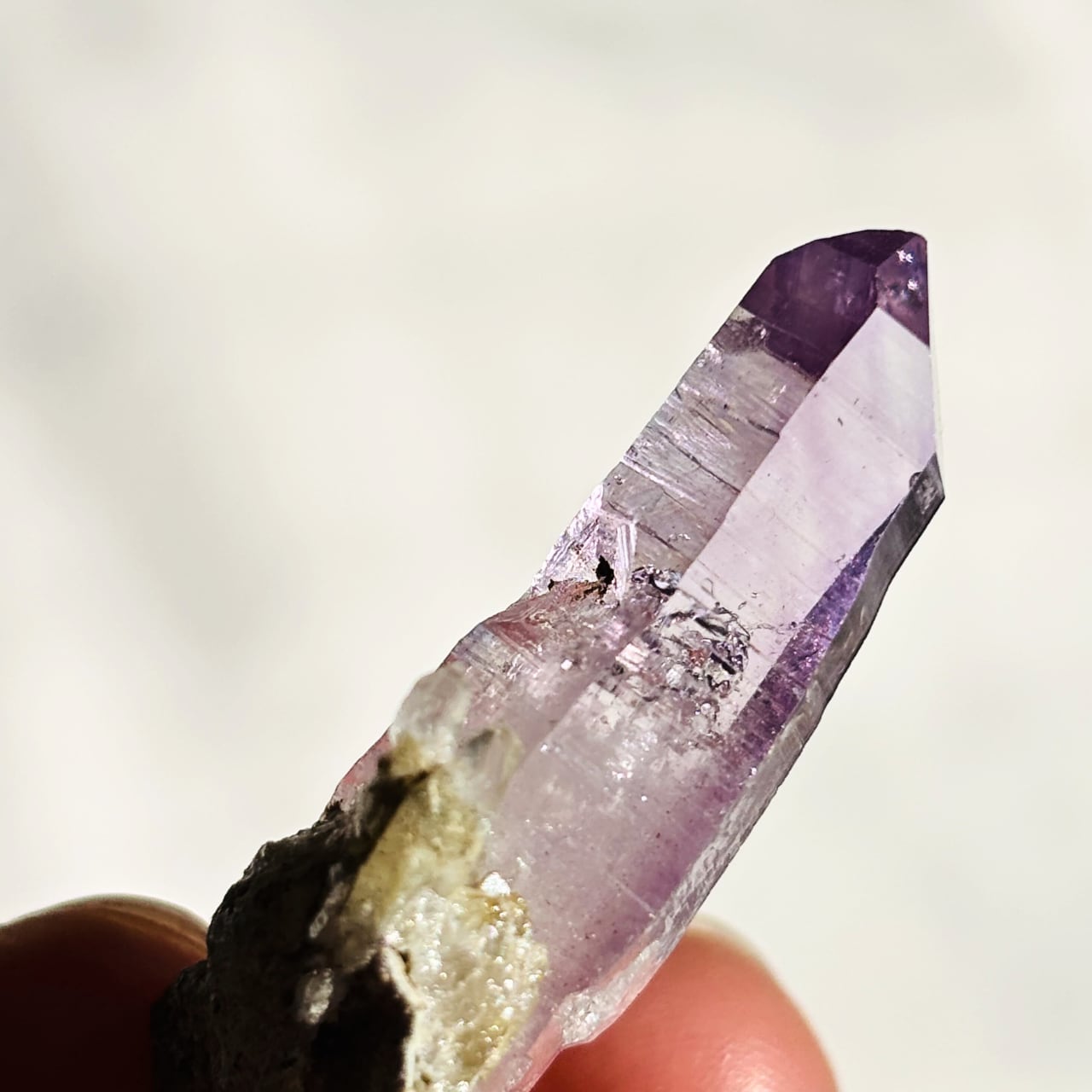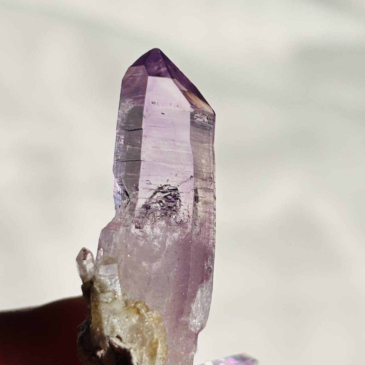 ファセット部分に成長線(レムリアンレッジ)も見えます。
