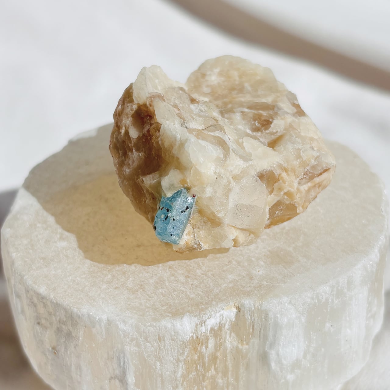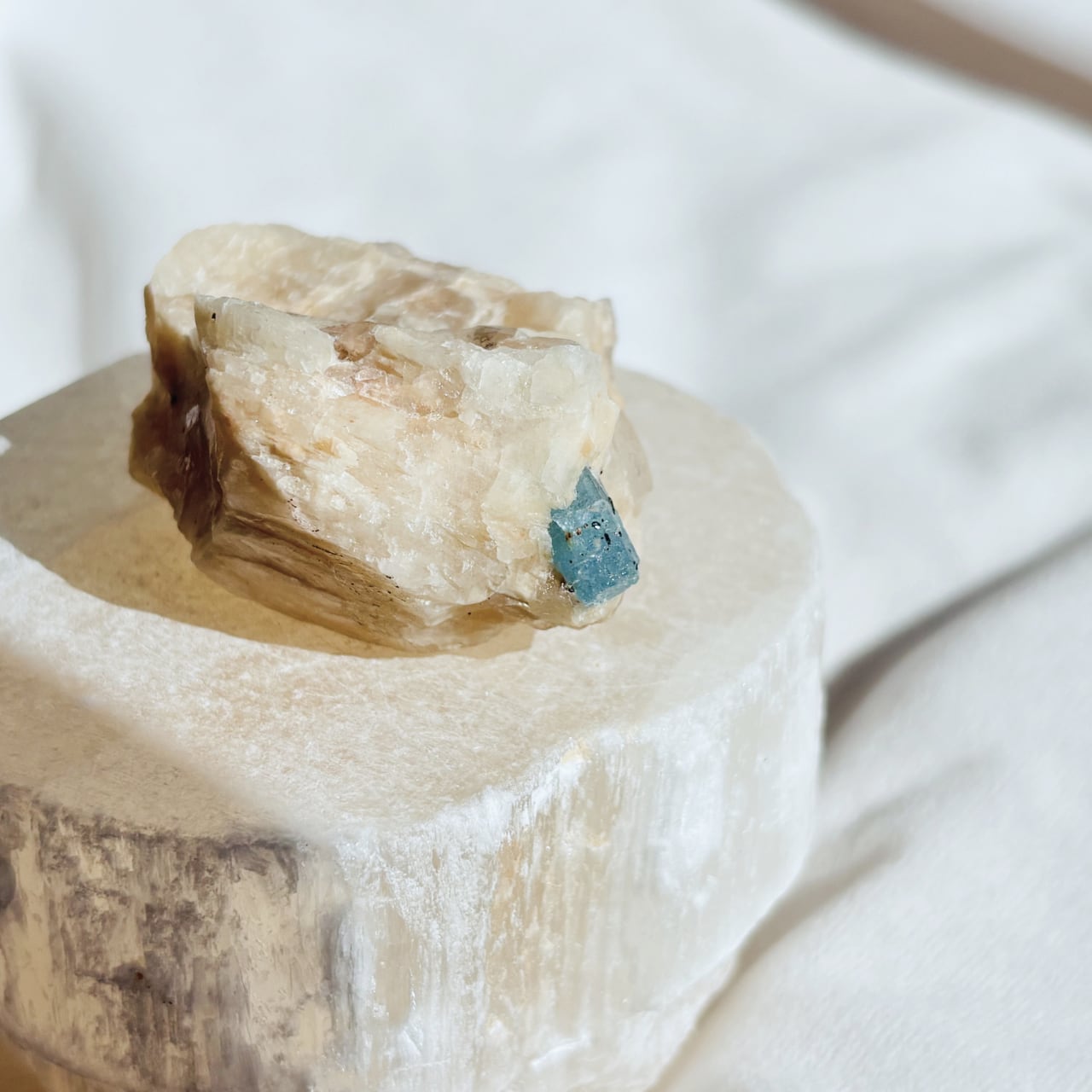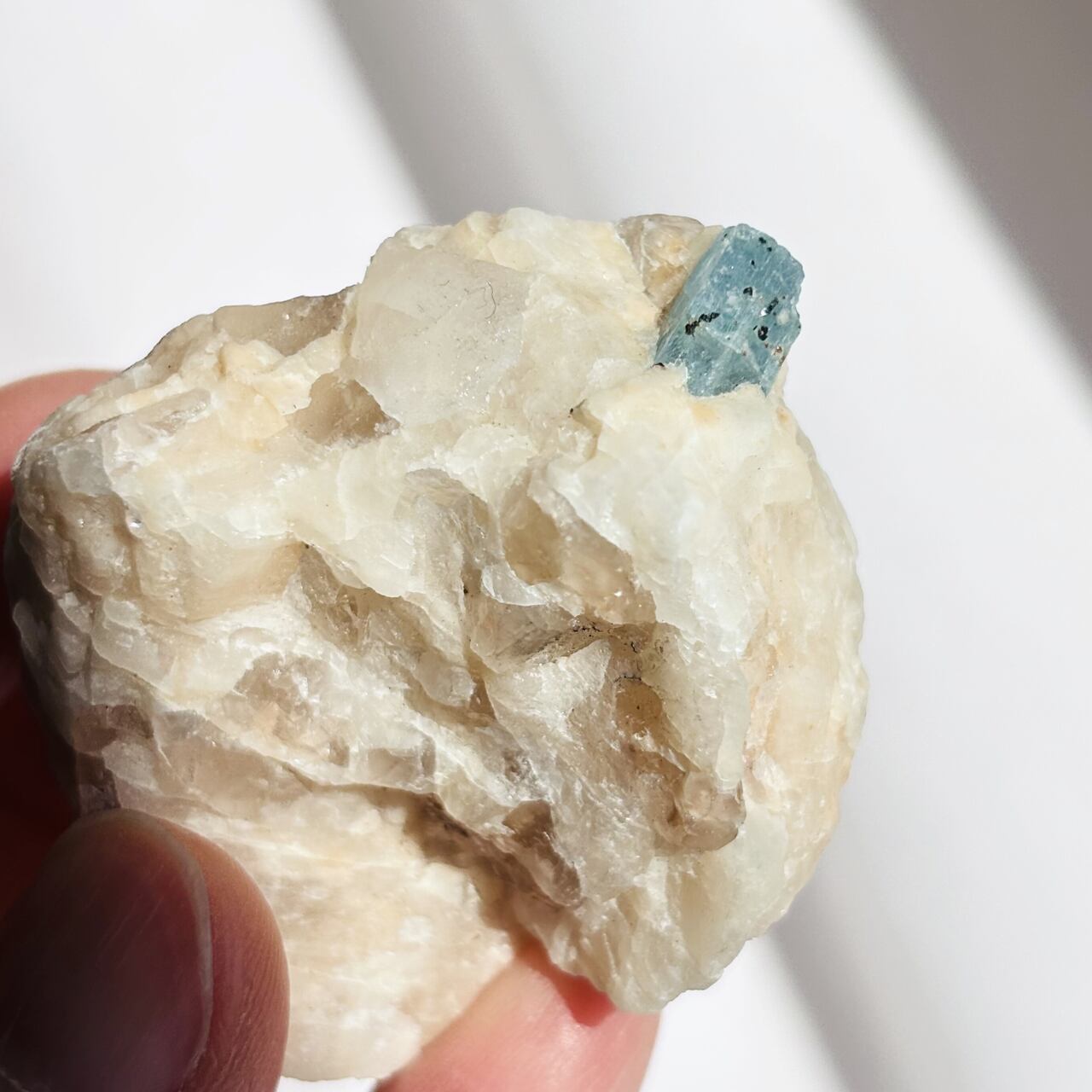 アクアマリン と アルバイト(曹長石) 共生 原石 ブラジル産 緑柱石 3月誕生石 天然石 鉱物 Aquamarine【741】