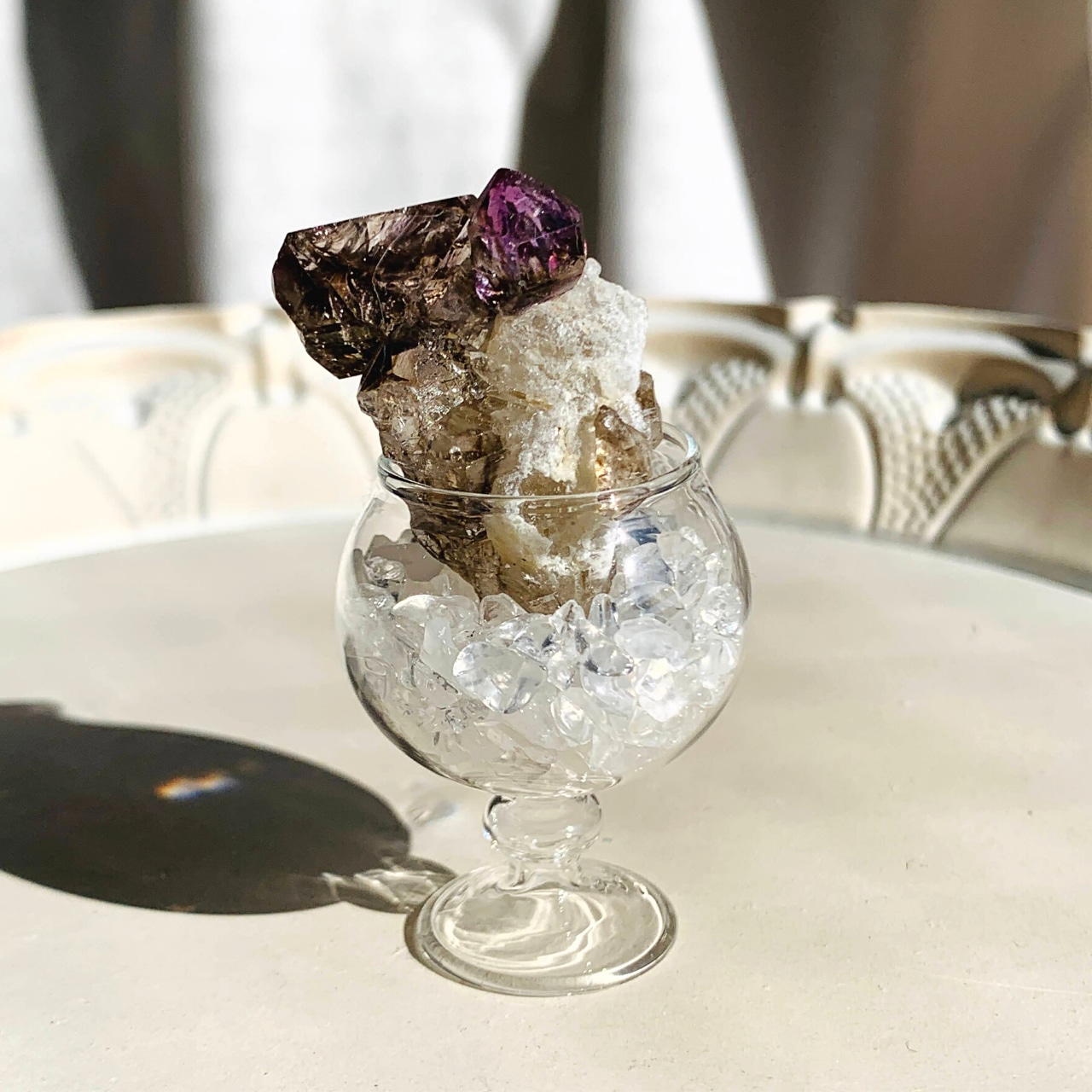 mini スモーキーアメジスト クォーツ 虹入り アメシスト 原石 天然石 水晶 パワーストーン smoky Amehyst Quartz【177】