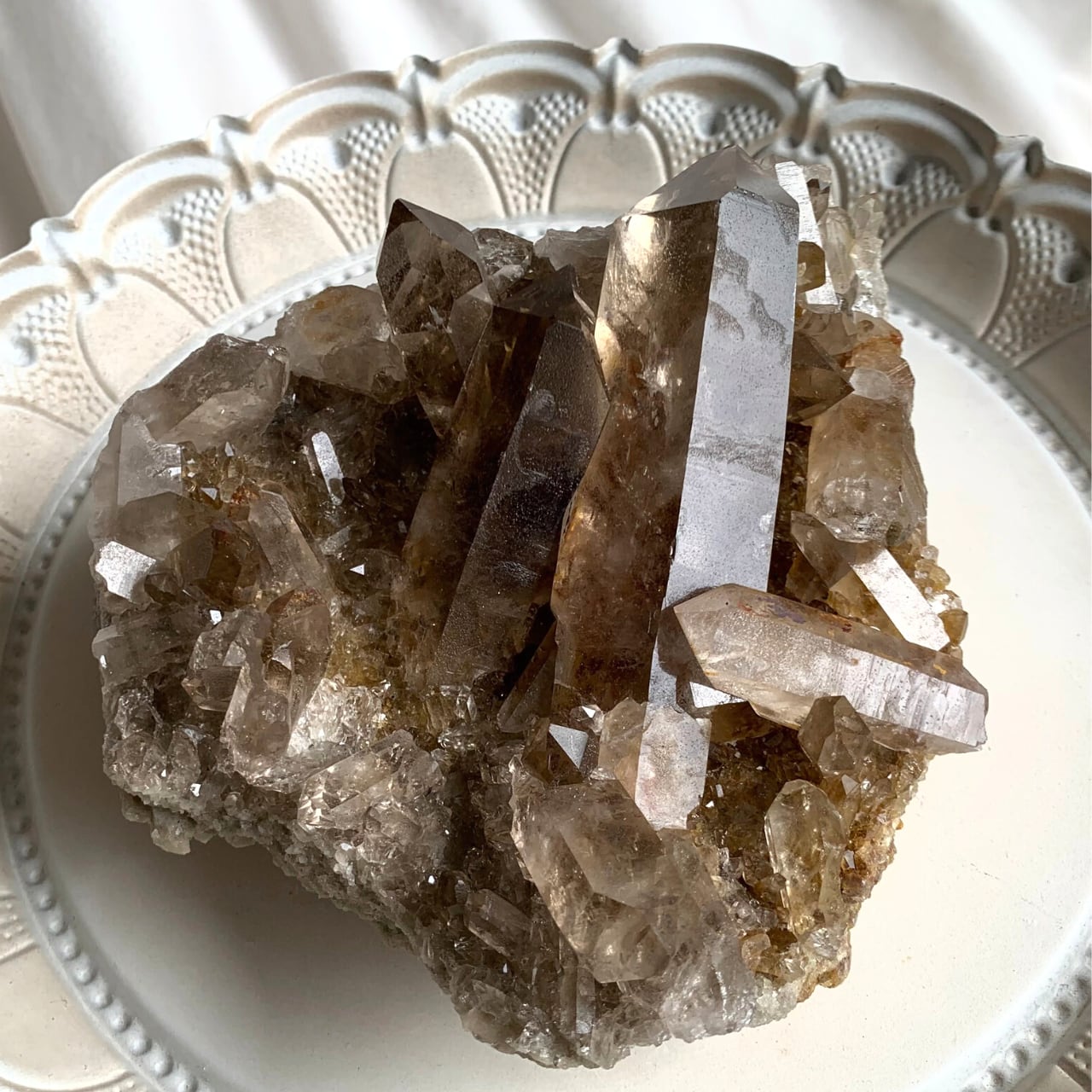 【Special Price】スモーキー クォーツ 虹入 クラスター ミナスジェライス産 高品質 煙水晶 天然石 鉱石 鉱物 パワーストーン Smoky quartz【390】